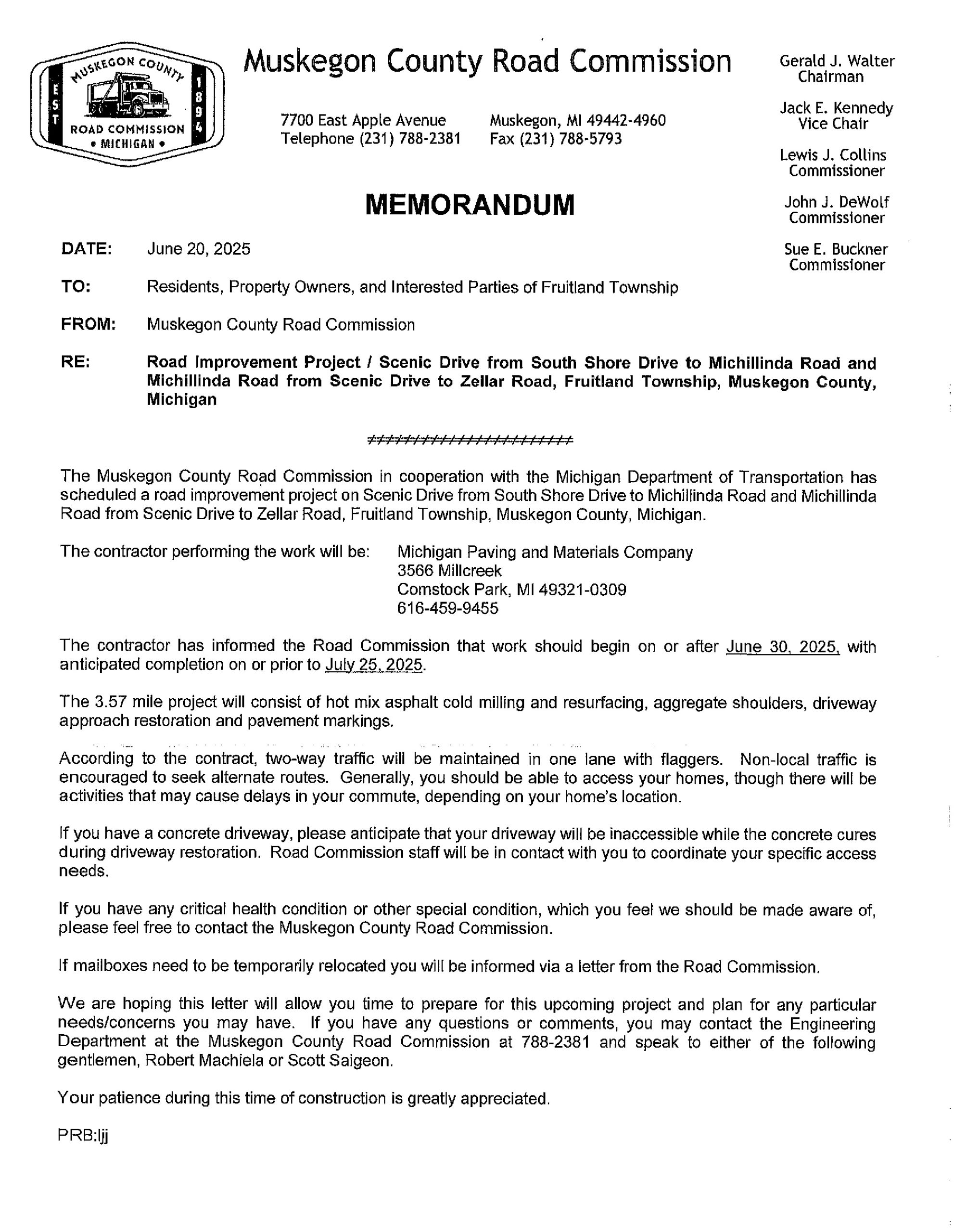 Upcoming Road Improvement Project